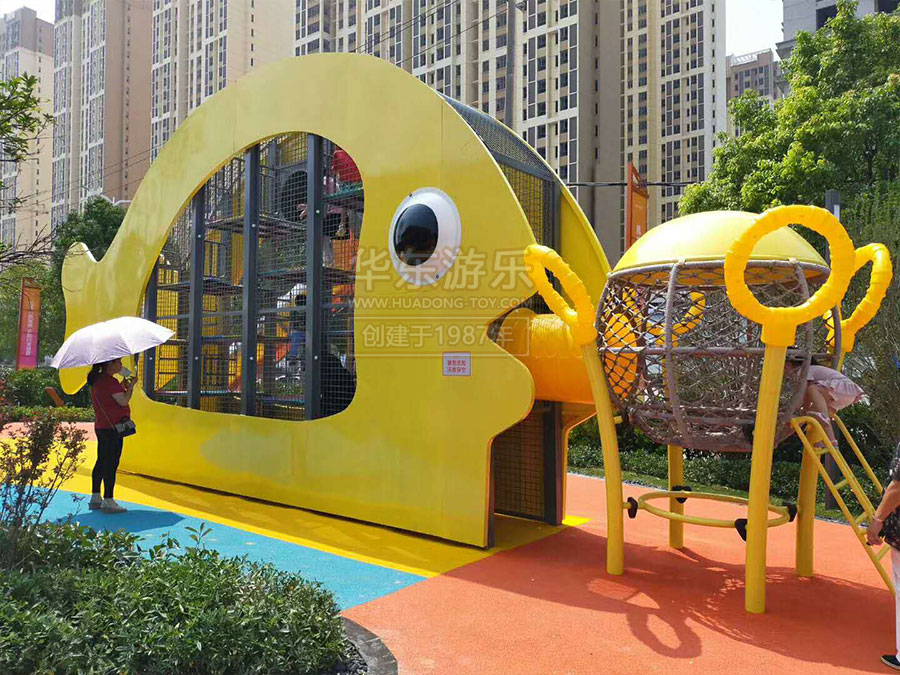 碧桂园城市之光案例是由ky开元游乐自助设计的研发的以水中的鱼儿为主题而设计的游乐设备,该游乐设备具有爬网、不锈钢滑梯、攀岩设备等,设计新颖,主题明确,深受小朋友的喜爱。
