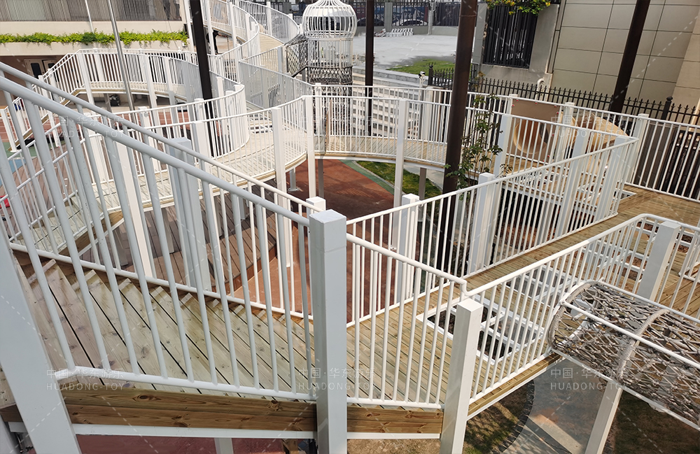 • 和风轩幼儿园专业的学前教育培训学校,该学校的项目采用的是以空中楼阁为主题而设计的 游乐设备,整个游乐设备采用钢架构和木制结构制作而成,设计了钻洞、攀爬、空中廊桥等功能,该项目的设计不仅仅丰富的小朋友的玩耍,同时也为整个校园增添了活力。