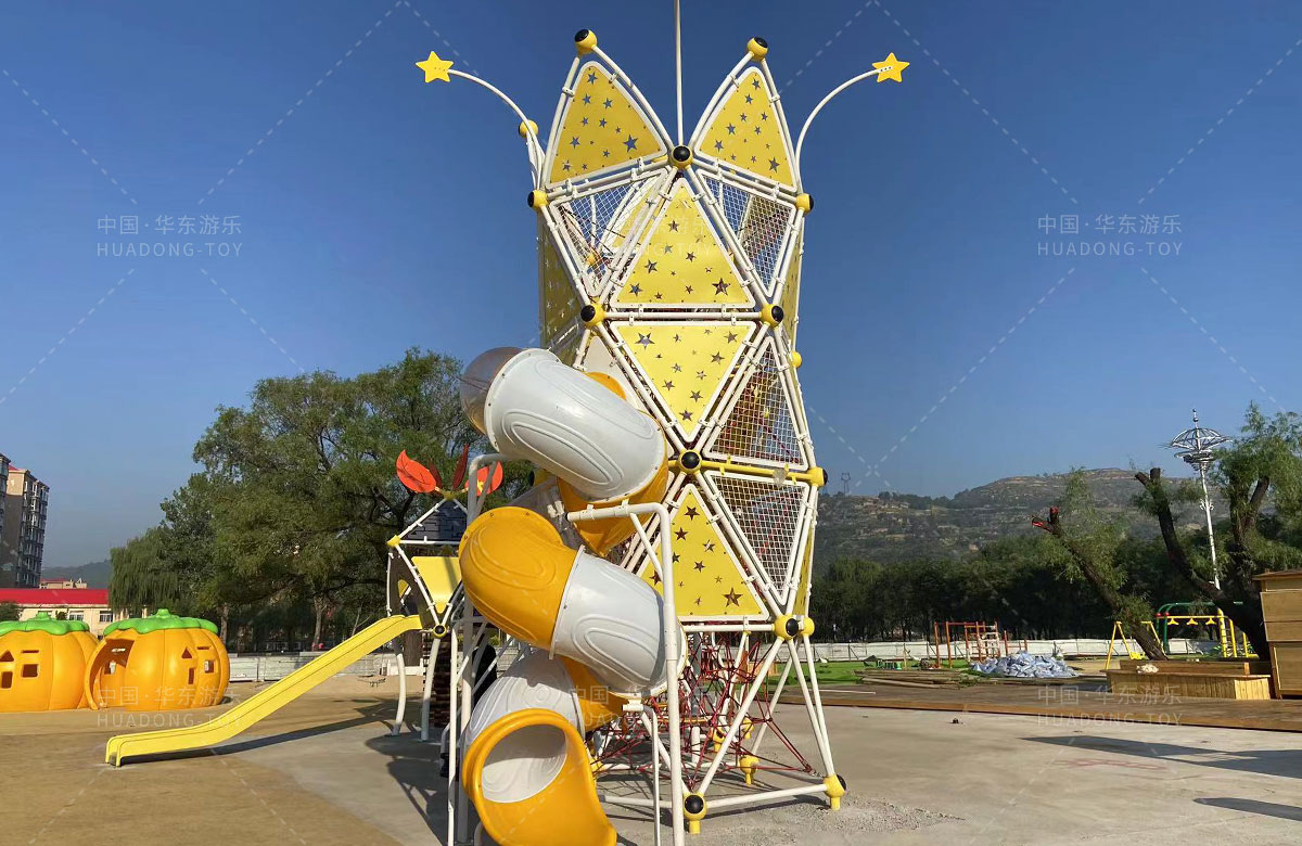 崔家沟体育广场体育广场选用的是ky开元游乐自主研发和设计的非标定制系列游乐设备,分别设置了攀爬网、钻洞、不锈钢滑梯、儿童摇摇乐、儿童秋千、木质拓展等游乐设备,很大程度上丰富了孩子们的娱乐生活,也为整个场地提供了生机与活力。