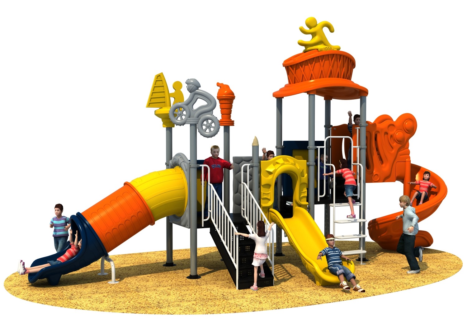 • 赛事系列游乐设备是ky开元游乐根据常见的足球、垒篮球体育等赛事而自主研发和设计的组合滑梯,它是一款能够引导孩子们在玩耍时小朋友之间应该互相帮助、相互鼓励的无动力游乐器械,也是一个具备教导孩子们学会通过自己的努力取得最终胜利而敢于拼搏和挑战的游乐设备,卡通的造型、生动的形象让小朋友在玩耍的过程中有一个愉快的童年。